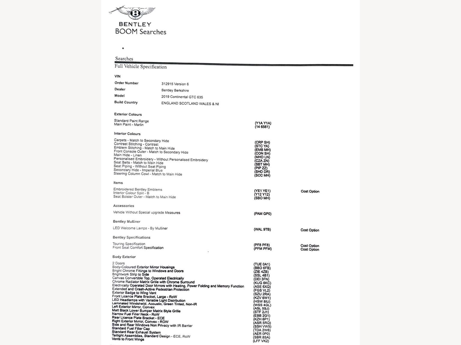 - Embroidered Bentley Emblems to Seat Facings